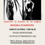 QUANDO IL SUONO SI FA SEGNO A Roma la prima personale di Manuela Scannavini: un percorso tra arte, musica, parole e video Inaugurazione sabato 18 aprile 2026 ore 18.30 La prima personale dell’artista Manuela SCANNAVINI, intitolata “Quando il suono si fa segno”, è il prossimo evento di SPAZIO SFEROCROMIA, studio di Umberto lppoliti che ospita l’artista: un’esperienza che coniuga diverse espressioni artistiche, tutte necessarie ad illustrare la complessa poetica che sta dietro […]