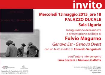 mercoledì 13 maggio 2015, ore 18 – Palazzo Ducale, Sala Liguria – Inaugurazione della mostra e presentazione del libro di Fulvio Magurno – Genova Est – Genova Ovest con un testo inedito di Edoardo Sanguineti