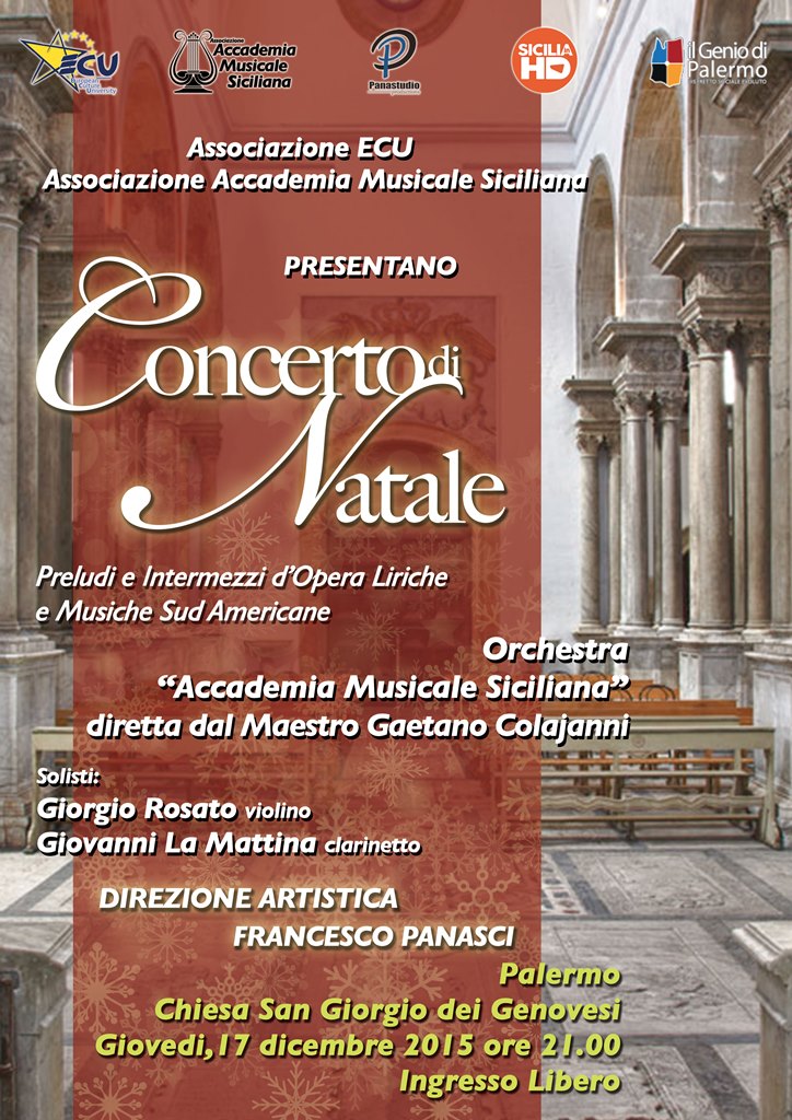L’associazione ECU e l’Accademia Musicale Siciliana presentano il “Concerto di Natale”. L’evento si svolgerà a Palermo giovedì 17 dicembre alle ore 21.00 presso la chiesa di San Giorgio dei Genovesi.