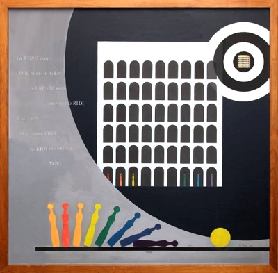 I suoi sono: colori squillanti, segni, segnali, suoni, che attraversano il vivere amalgamandosi a ricordi, fregi, scritture, frazioni di storia dell’arte, in un tempo che scorre come su un nastro, un tempo senza spessore, dove tutto è sempre qui ed ora.