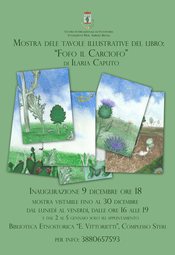 Venerdì 9 dicembre alle ore 18 presso la biblioteca “E.Vittorietti” (Complesso Monumentale dello Steri, piazza Marina, 57, Palermo), sarà inaugurata la mostra delle tavole illustrate realizzate per il libro per bambini “Fofo il Carciofo“.