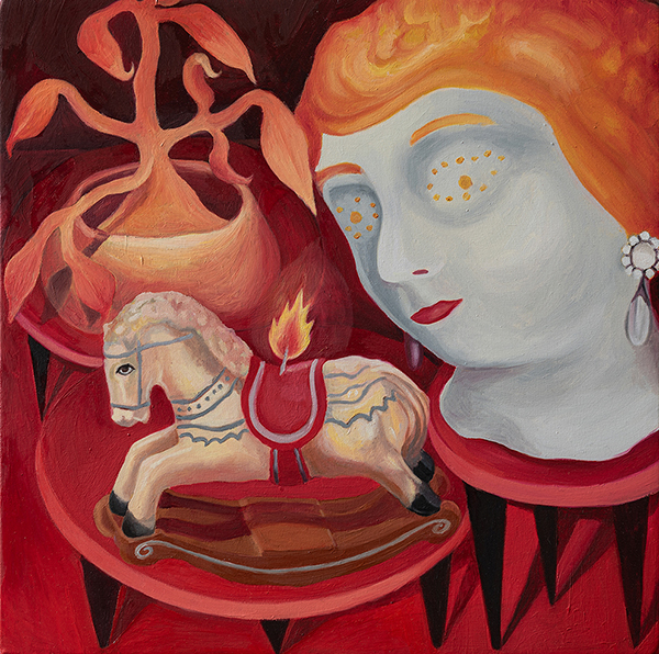 «In questi anni – dichiara Anna Capolupo – ho indagato la tradizione pittorica della natura morta e il mondo onirico, appuntandomi tutti i sogni per poi cercare di dipingerli, come indagine sull’inconscio. Distribuendo tutto su un tavolo: oggetti d’uso quotidiano, volti, piante, scorci di interni che, come su un palcoscenico, evocano memorie, creando atmosfere stranianti e ferme nel tempo. Riflettendo sulla natura morta, mi sono resa conto che la mia ricerca si è via via spostata più verso la creazione di un ambiente, un ambiente dove le cose accadono e si sovrappongono e si sedimentano le memorie e il tempo presente. Questo ambiente è evidentemente una casa. Quella a cui tutti apparteniamo perché è lì che cresciamo, che ci formiamo e ci identifichiamo e dalla quale andiamo via. Penso alla mia casa e in qualche modo cerco di ricostruirla. Mi chiedo se posso ancora chiamare casa un luogo dove da vent’anni non trascorro più la mia quotidianità. Questa casa diventa allora per me un ricordare malinconico. Vivo con essa un amore nostalgico e la cosa più evidente di questi lavori è che l’infanzia è ciò che mi lega ancora a quel concetto di casa che oggi, da adulta, non so ritrovare in nessun luogo».